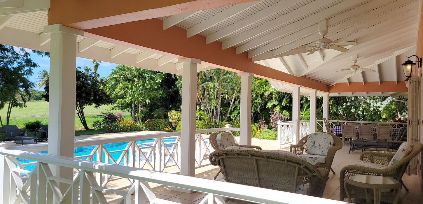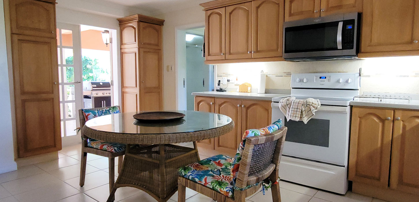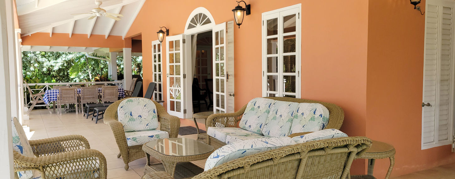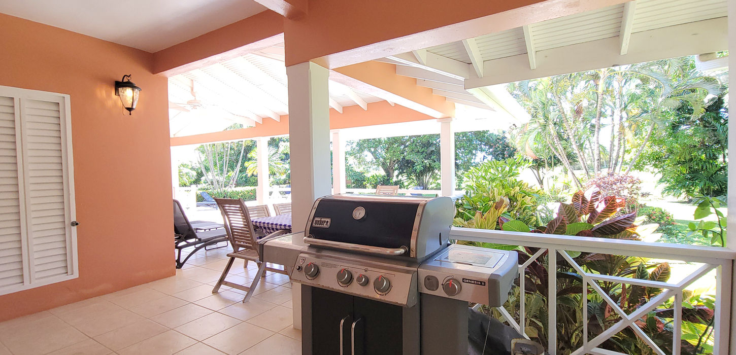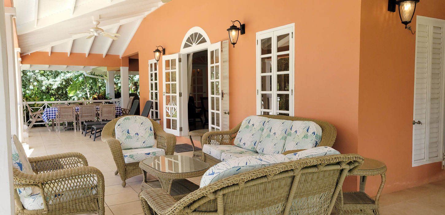 Calabash House is designed for laid-back Caribbean living. A large covered porch offers multiple seating areas, an outdoor dining table, and a BBQ grill, ideal for shared meals and evenings outdoors.