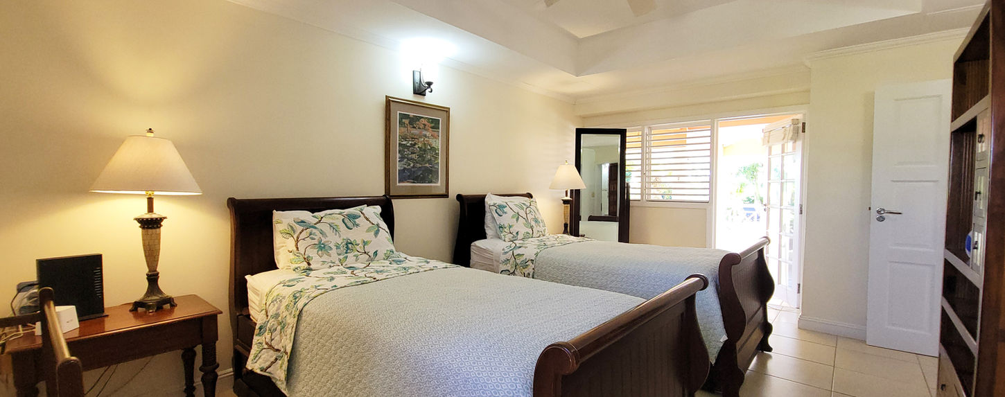 Three upstairs bedrooms open directly onto two large shared balconies, perfect for enjoying the tropical breeze and garden and pool views.