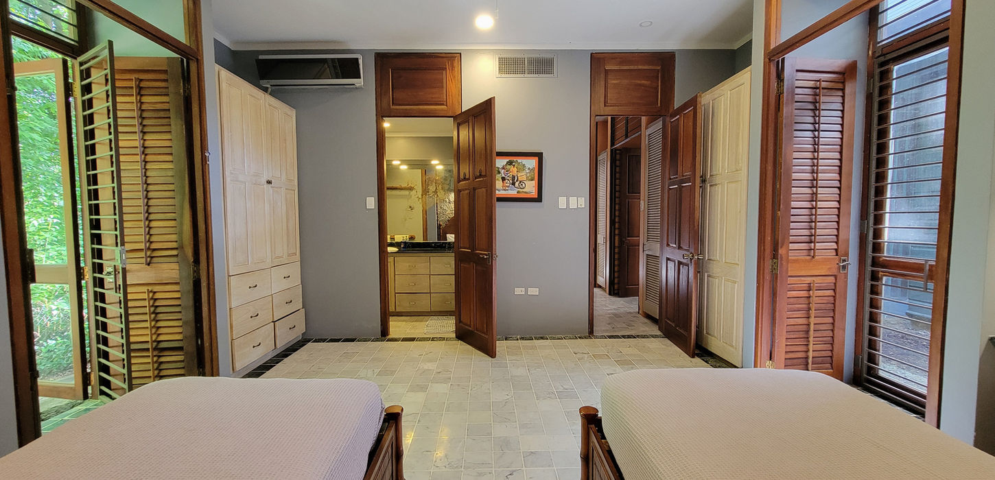 As you step inside La Maison Verte, you'll be greeted by a spacious and tastefully decorated interior, featuring really cool furnishings and warm thoughtful touches throughout. With five air-conditioned en-suite bedrooms, each with a name signifying a staple of our culture, this villa is the ideal choice for families or groups of friends looking to experience the best of tropical inside and outside living.